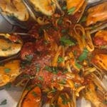 Fresh mussels in garlic, olive oil, lemon and white wine sauce.