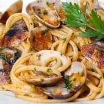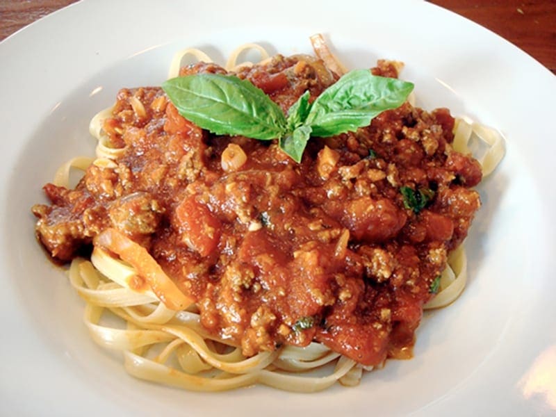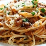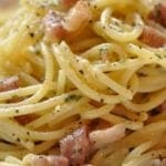 Spaghetti with Italian ground bacon in a cream and egg sauce